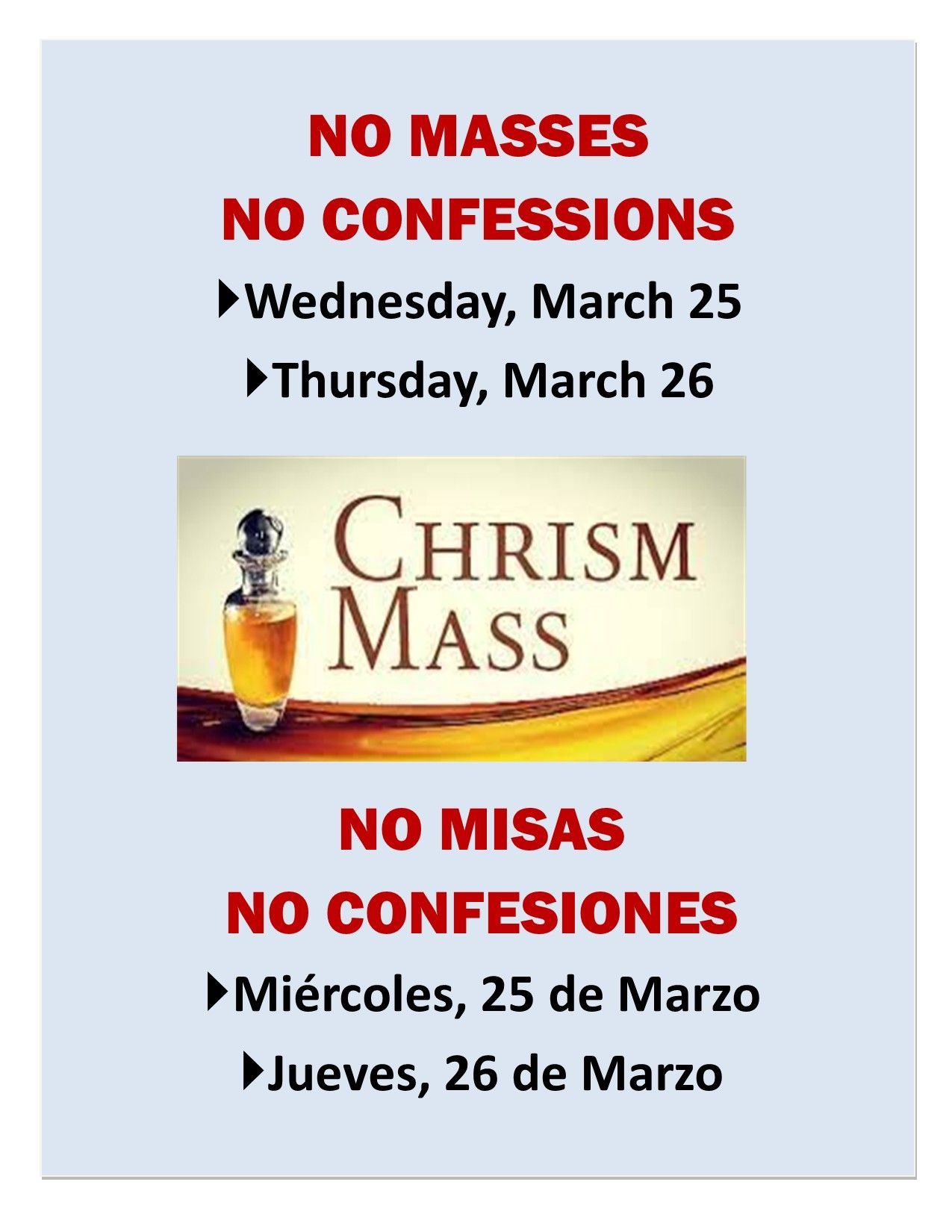 Confirmations April 11 (10 AM & 2 PM) & 12 (9 AM & 1 PM)